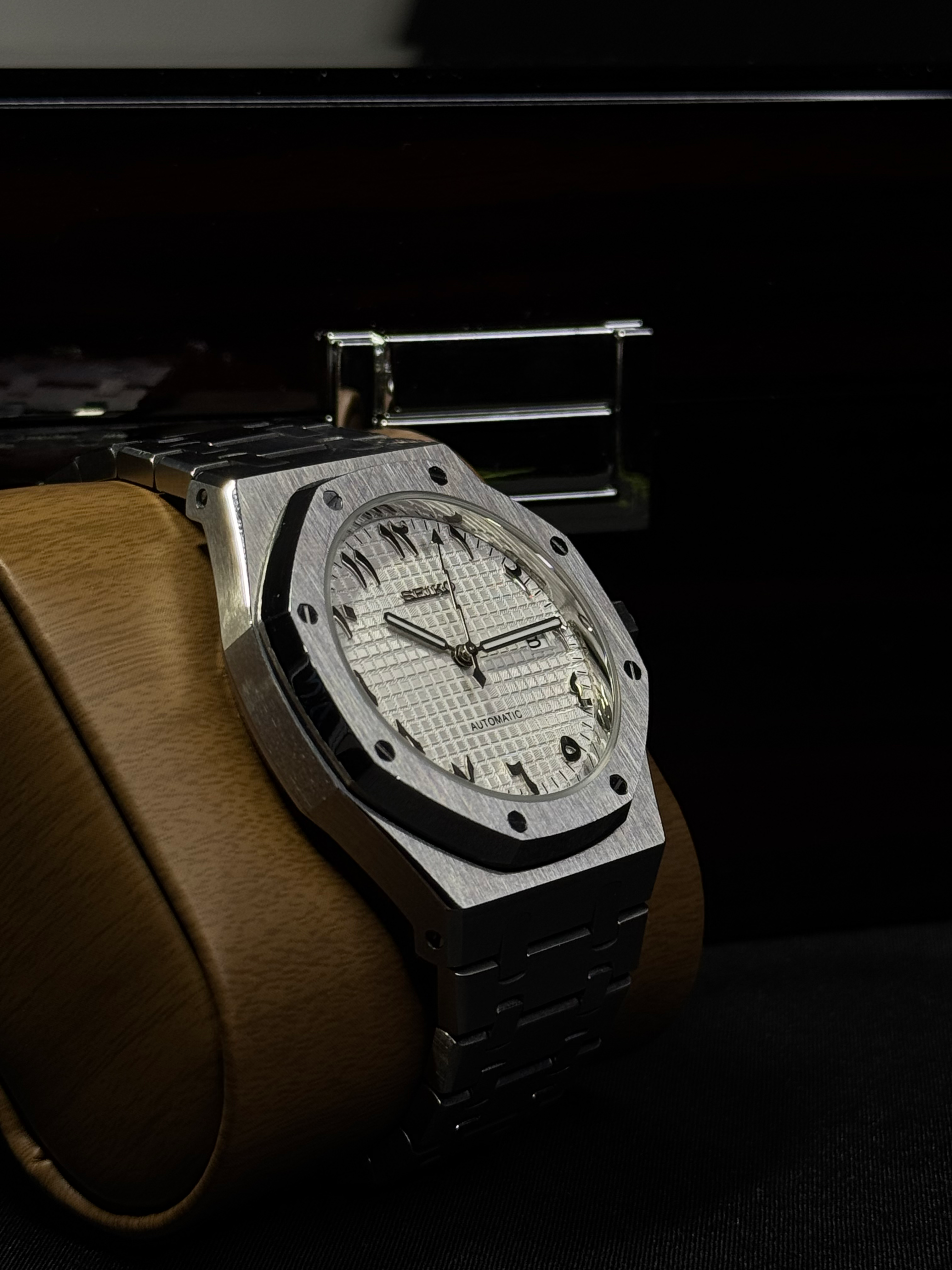 Nejsme oficiálním prodejcem hodinek Seiko ani nejsme se společností Seiko spojeni. Neprodáváme oficiální modely Seiko. Naše hodinky jsou upravené hodinky s originálním strojkem Seiko a zbytek jsou výhradně náhradní díly.